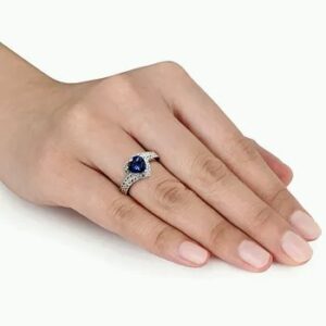 Blue Sapphire (1/4 ct. t.w.), White Sapphire (1/8 ct. t.w.), & Diamond Accent Heart Ring in Sterling Silver