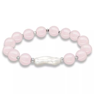 Add soft elegance to your look with this genuine stone biwa pearl stretch bracelet. This smooth bead bracelet gets a boost from a freshwater pearl center and silver plate accents.